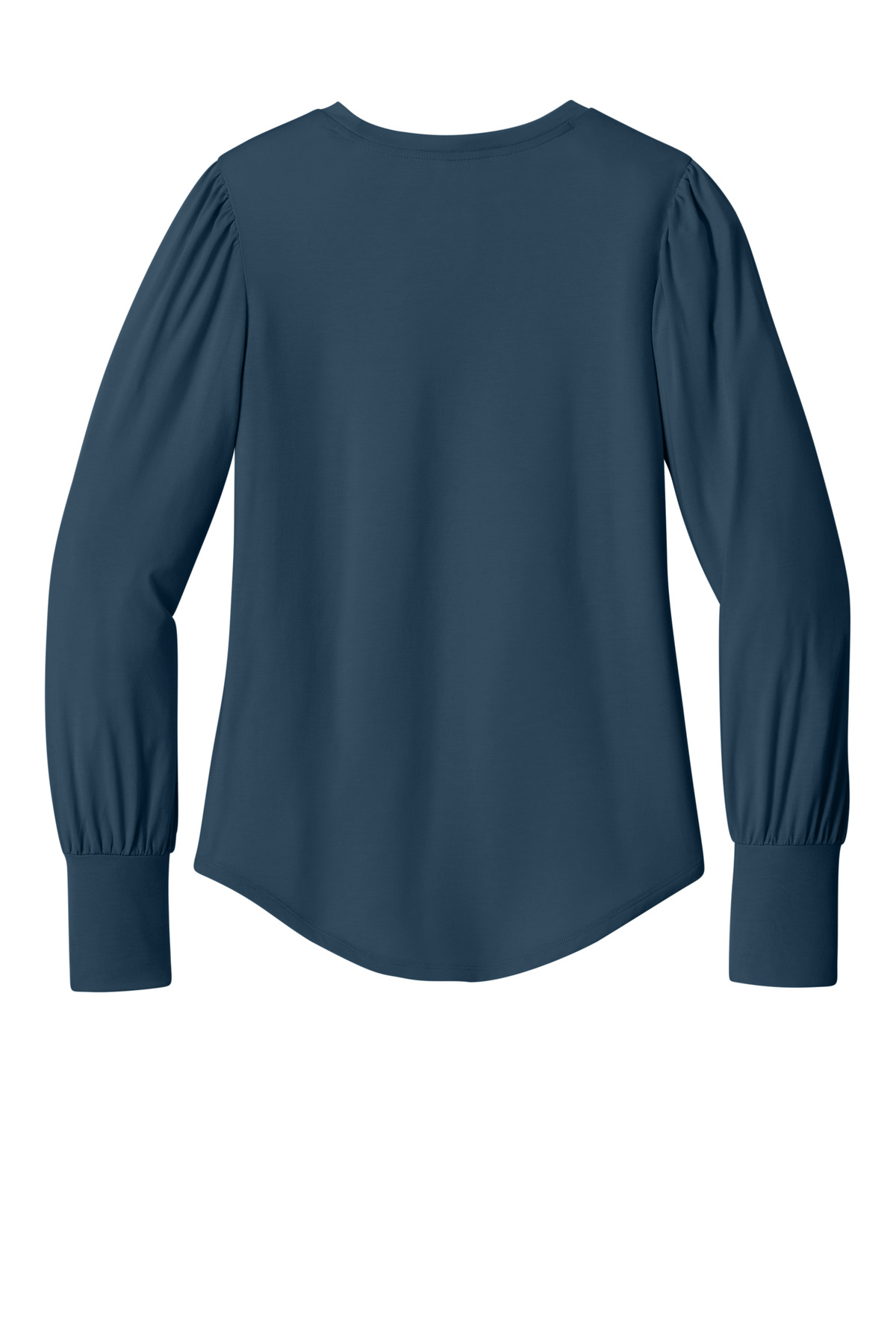 Blouson sleeves with wide self-banded cuffs.