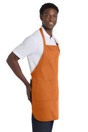 Two waist-level patch pockets, pen pocket. Adjustable neck strap. Measures 22″w x 30″l.